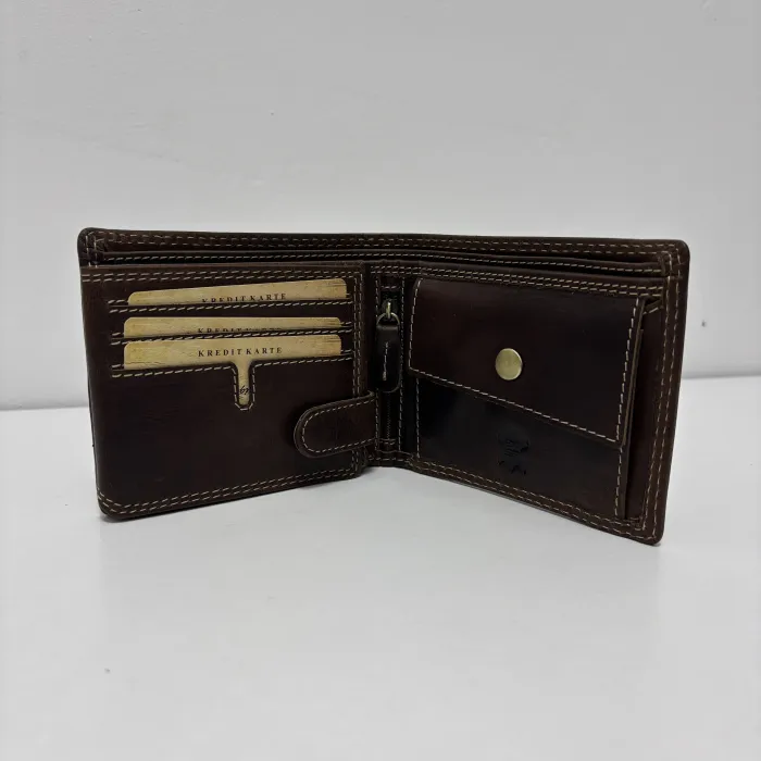Portofelul din piele bizonata pentru bărbați este un accesoriu de lux, confecționat din piele de bizon de calitate superioară, recunoscută pentru durabilitatea și textura sa unica. Designul său clasic, dar modern, include compartimente multiple pentru carduri, bancnote și un buzunar pentru monede, oferindu-ți atât funcționalitate, cât și un stil rafinat. Pielea de bivol se îmbunătățește în timp, dezvoltând o patină frumoasă care îi adaugă un plus de personalitate și caracter.